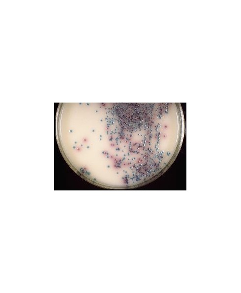 Per la determinazione di E.Coli con metodo cromogenico, soprattutto nelle acque (UNICHIM 1185); E.COLI sviluppa colonie verde blu.